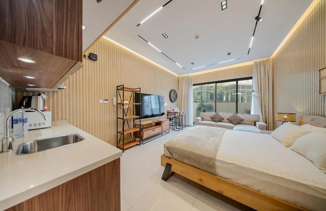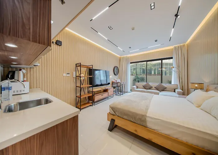 Il Luxurious Studio Apartment With Private Garden Sharjah si trova a circa 3 km dall'Università di Sharjah e offre Wi-Fi sia per motivi di lavoro che per svago.